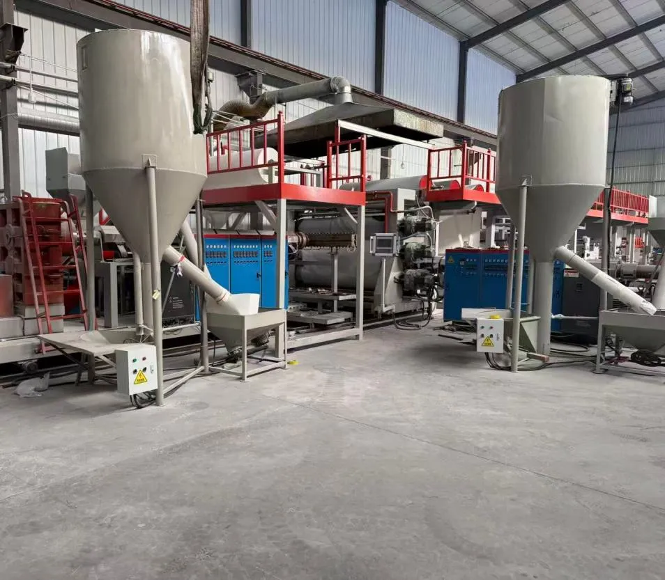 Batching og højhastighedsblanding: Bland PVC-pulver, blødgører, stabilisator, anti-UV-middel og fyldstof → varmblanding → koldblanding → materialeopbevaring, med automatisk fodringsfunktion for at sikre ensartet blanding